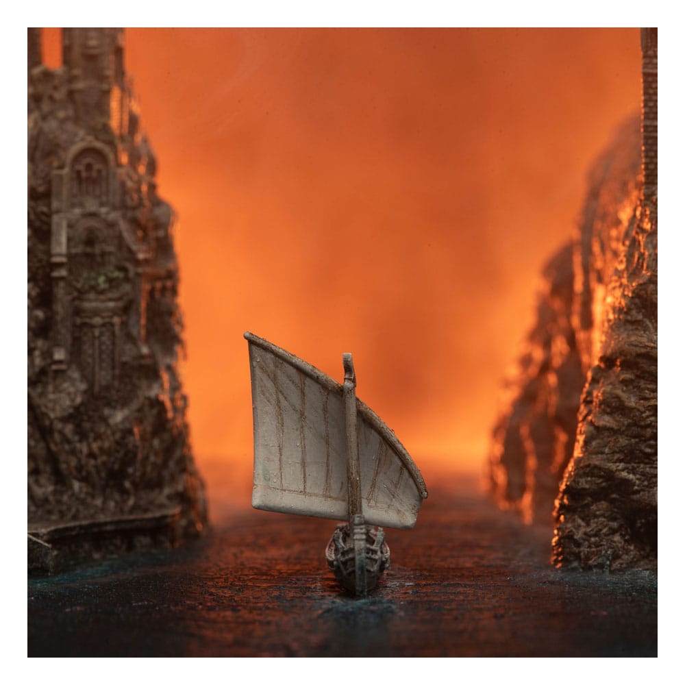 Upon the western shores, where the land met the boundless sea, lay a realm that marked both a journey’s end and beginning. This port city, known as Grey Havens, was to be the final destination on this mortal continent for the Elves. Upon hearing the call of the sea, they felt compelled by an instinctual urge to cross the tranquil waters, returning home to the Blessed Realm under the guidance of the Elven Lord and Shipwright Círdan. Once a vibrant and bustling metropolis, the Grey Havens has since transformed into a serene and hushed landscape, inhabited only by a scant few elves who linger, awaiting their final departure. Yet, despite their dwindling presence, the ethereal beauty of this coastal sanctuary remains untarnished. This limited edition collectible environment perfectly captures the gracefully carved structures that organically emerge from the embrace of the encircling mountains. Their contours mimic the undulating waves of the ocean they cradle, evoking an atmosphere of calming serenity. From the careful recreation of Elven architecture to the meticulous and lifelike paint application, the tranquillity of this sacred haven and the aura of its ancient grace shines through – a testament to the enduring enchantment left by the Elves’ touch upon Middle-earth™, and now, your shelf.