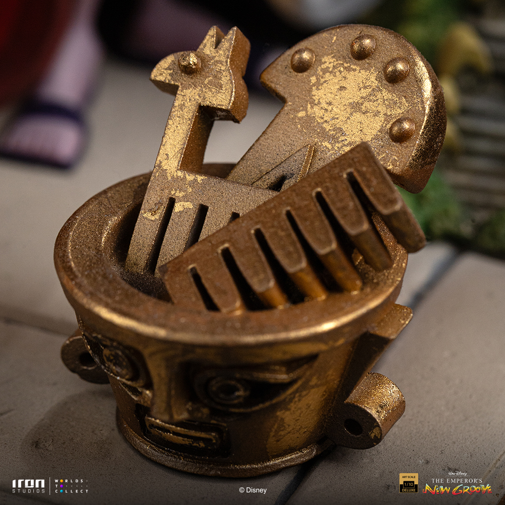 El diorama retrata toda la personalidad explosiva del emperador y la malicia —y la hilarante frustración— del genio de Yzma. Una pieza vibrante, divertida y rica en narrativa que transporta al fan al universo único de El emperador y sus locuras.