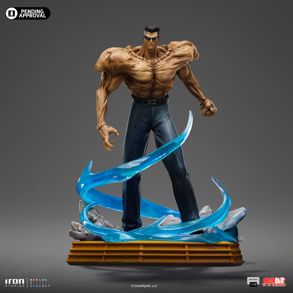 After witnessing the brutal massacre of his dojo’s students, the young Toguro makes a fateful decision—to win the Dark Tournament and avenge their deaths by defeating the demon Kairen, the one responsible for the atrocity. Upon his victory, Toguro chooses to become a demon as his prize, ensuring that one day, he can be defeated by a human, thus atoning for his sins. His wish comes true in the final battle of the Dark Tournament against Yusuke Urameshi, where, deeming the young warrior worthy, he unleashes 100% of his power. Despite his transformation into a demon, Toguro’s unshakable sense of honor remains intact. Even in death, when offered a lesser punishment, he insists on being sent to hell. As a demon, Toguro possesses the ability to control his own musculature, adjusting the percentage of power he releases, exponentially increasing his strength and body size. The statue portrays him at 80% power, showcasing his massively enhanced physique with bulging muscles that completely transform his appearance. The base features a swirling wave of demonic energy, surrounding the character in the «Toguro – Yu Yu Hakusho – Art Scale 1/10» statue by Iron Studios, faithfully depicting his final showdown with Yusuke Urameshi during the Dark Tournament. The anime-inspired painting gives the piece its distinctive, stylized look. Additionally, the translucent energy effect on the base enhances the battle’s atmosphere, complementing the other statue in the line.