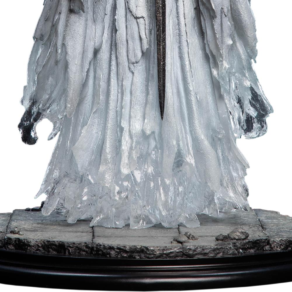 In the depths of the pitch-black night, veiled by darkness, only the sporadic glimmers of moonlight upon grim blades betrayed their lurking presence. In dire need of refuge, Frodo, with haste, surrendered his destiny to the One Ring. But solace did not greet him. Rather, he beheld a pale and spectral sight: echoes of ages past, haunting and ethereal. Amidst the Unseen Lands, only the sickening radiance of the wraiths endured. Renowned sculptor Brigitte Wuest, known for her skills across Middle-earth characters, crafted the impeccable Classic Series Ringwraith of Mordor collectible, capturing the menace of Sauron’s chief servant, particularly in the hyper-realistic detailing of the Ringwraith’s ancient cloak. Now, once again demonstrating her talents, she has immaculately carved out the ghoulish visage of the Witch-king’s spectral form. Complementing Brigitte’s skills with our experienced manufacturing team, everything from casting to painting has been harmonized together in such a way that this ghastly figure achieves a level of etherealness unlike any before.