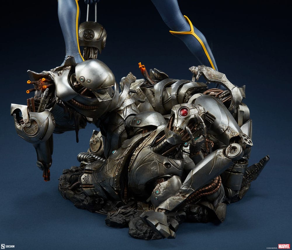 Sideshow presents the Wolverine: X-23 Uncaged Premium Format™ Figure. This awesome Marvel collectible showcases Laura Kinney’s impressive ability to overcome nearly insurmountable odds. Danger Room drones, meet Laura Kinney’s fists and fury. Measuring 20.5” tall, 15” wide, and 13.3” deep, the Wolverine: X-23 Uncaged Premium Format Figure finds this legacy mutant at the end of an intense training session. Laura wears her All-New Wolverine costume while balancing on a metallic mountain of defeated adversaries. She looks ahead with well-earned confidence as her Adamantium claws plunge into a robot’s severed head, dealing the final blow. Simulation complete! Inspired by the character’s appearance in Marvel Comics, this fully sculpted X-Men collectible brings the battle right to your doorstep. Every detail, from the blue and yellow super suit and masked portrait to the mass of mangled machinery on the base, presents Laura Kinney at her most powerful. Surround her with allies from Sideshow’s X-Men Collection like the Rogue & Gambit Statue, the Dazzler Premium Format™ Figure, the Colossus and Wolverine: Fastball Special Premium Format™ Figure, and many more for an epic evolutionary team-up.
